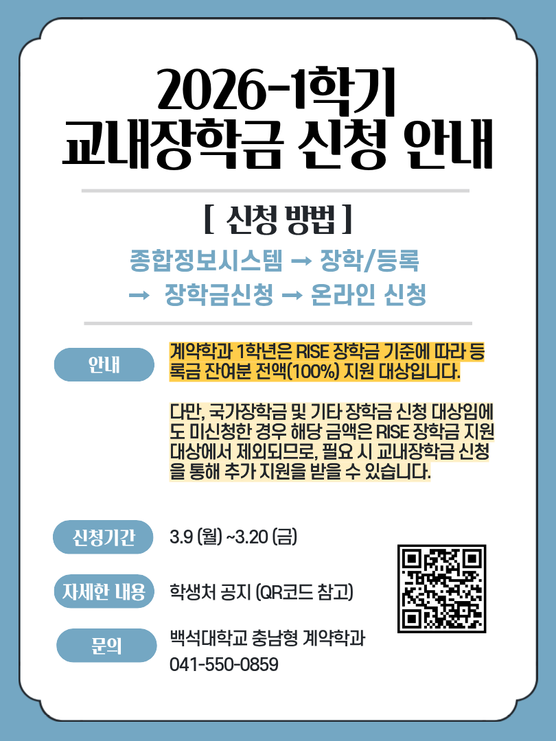 2026-02-242026-1학기 신·편입생 교내장학생 선발 안내(신청기간 : 3/9~3/20)