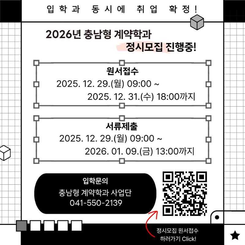 2026년 충남형 계약학과 정시모집 원서접수 및 서류제출 안내 |