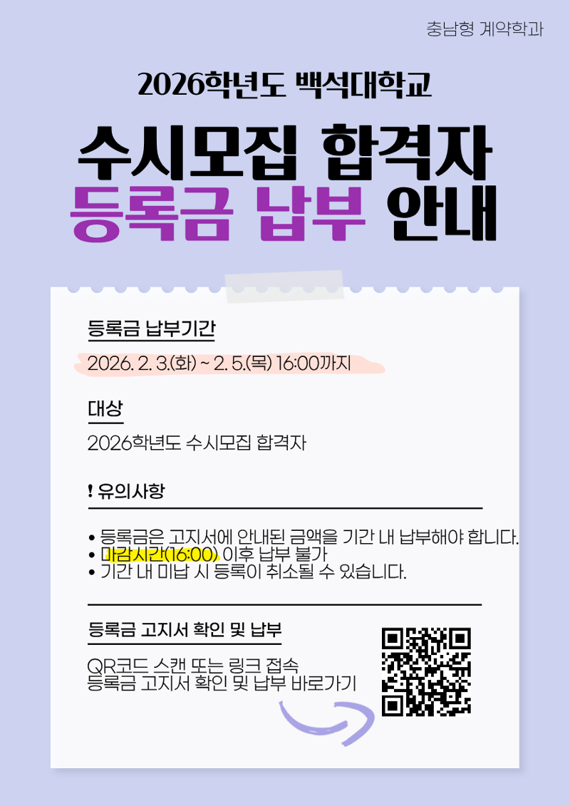 | 다음글 | 2026학년도 정시모집 최초합격자 등록 안내 |